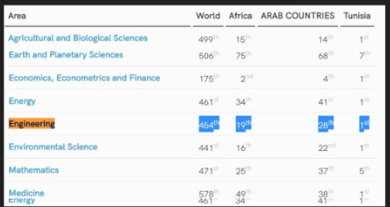 Le tableau intitulé "Classement du Département de Génie Électrique de l'Université de Sfax - ENIS" met en lumière la position prestigieuse du département dans le domaine de l'ingénierie. Selon ce classement, le Département de Génie Électrique occupe la 454ème place mondiale, le 19ème rang en Afrique, le 28ème rang parmi les pays arabes, et la première place en Tunisie. Ces résultats reflètent l'excellence académique et la réputation internationale du département.